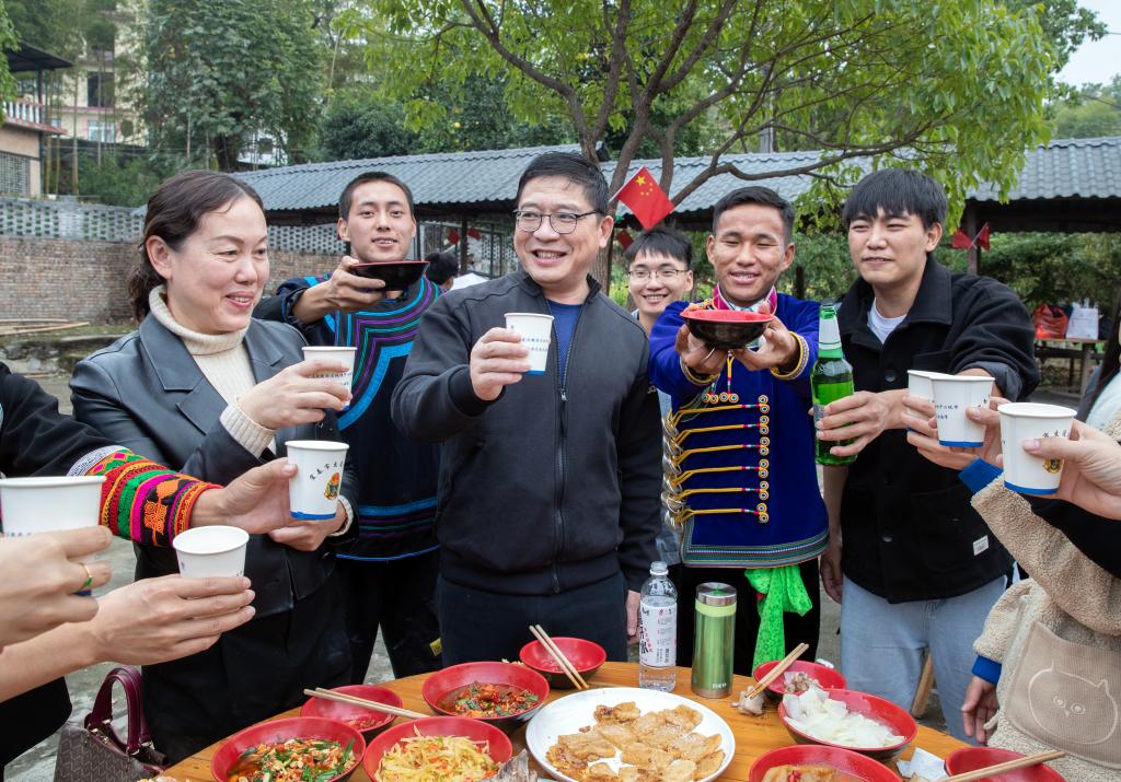 唱着过年歌,喝着祝福酒,任军向同学们送上了节日的问候和祝福。彝族同学们感谢学校领导与老师们为他们精心筹备新年活动,感谢学校的培养和关爱!