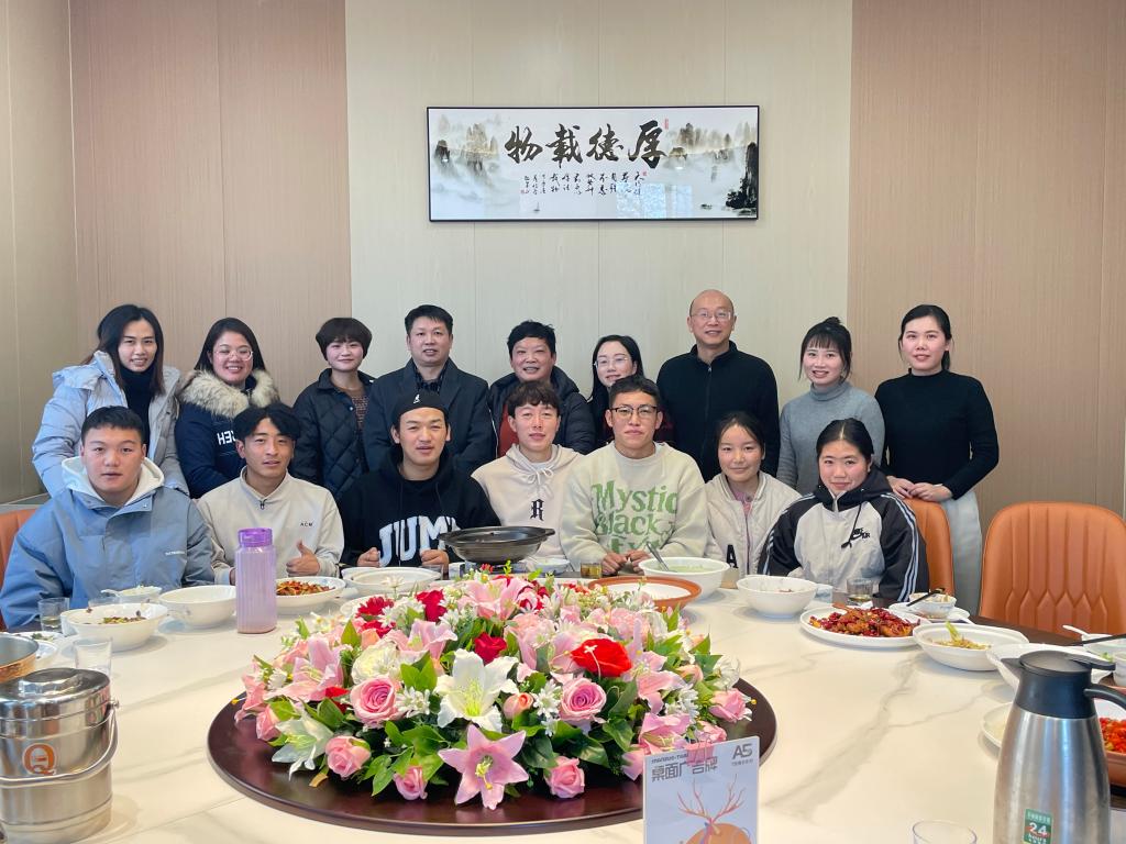 1月18日,学工处处长谢海英、医学院院长潘锋钢、党总支书记王晔,师范学院党总支书记邹晓英、院长肖勇等一行人与留校学生欢聚一堂,共进午餐,喜迎新春。