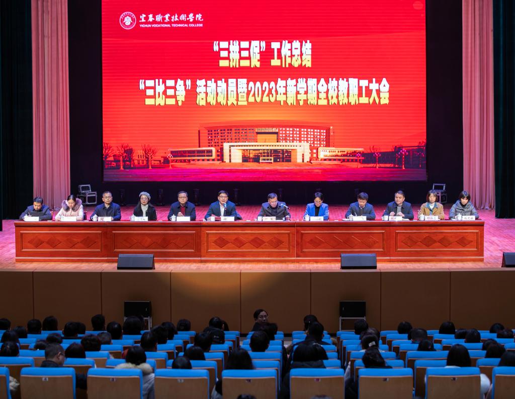 此次大会是在新校区出彩大会堂召开的首次全体教职工大会,具有继往开来的重要意义。新征程的号角已经吹响,新跨越的步伐更需坚定!未来,全校教职员工将会以敢想敢干的志气、敢破敢立的锐气、敢打敢拼的胆气、敢闯敢试的勇气,着力汇聚学校高质量发展的强大动力,以实际行动和优异业绩向合并建校二十周年献礼,奋力谱写特色鲜明的高水平职业高等学校宜职新篇章。