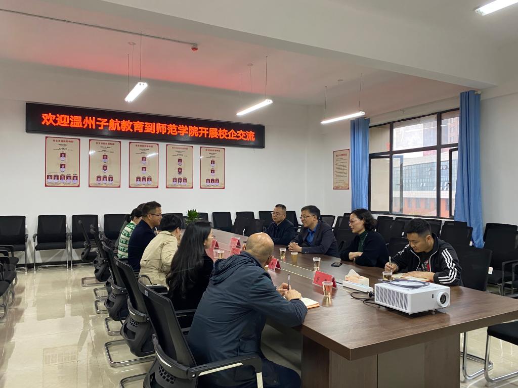 本站讯(师范学院 暨琨)为拓宽校企合作渠道,促进产教融合,探索创新人才培养模式,4月11日下午,师范学院在正心楼B204会议室与温州子航教育集团开展校企交流座谈会,党委副书记、校长邱军,副校长张印华,招生就业处处长彭艳飞及师范学院领导参加座谈。
