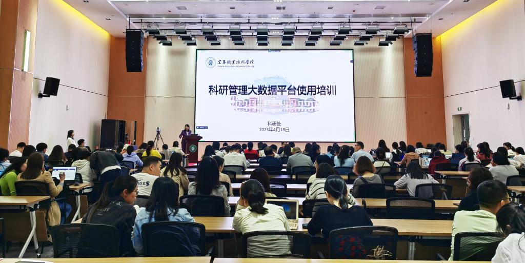 本站讯(科研处 何风艳)4月18日下午,科研处在天工楼4楼学术报告厅举办科研管理大数据平台使用第三轮培训,各二级学院、教学部分管科研工作领导、科研管理员、教研室主任、教师代表170余人参加培训。科研处处长敖美蓉主持。