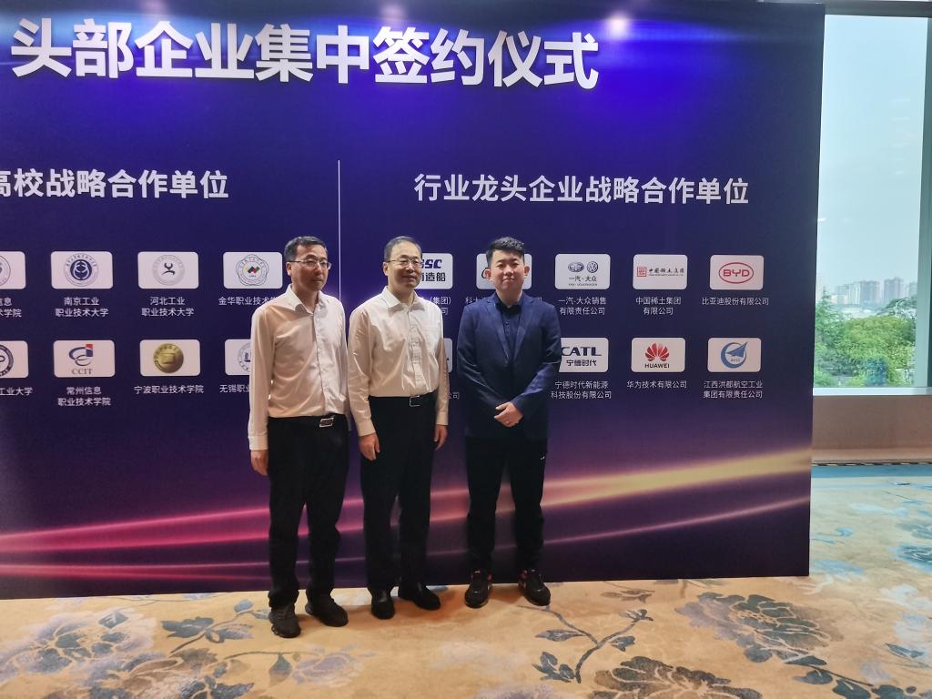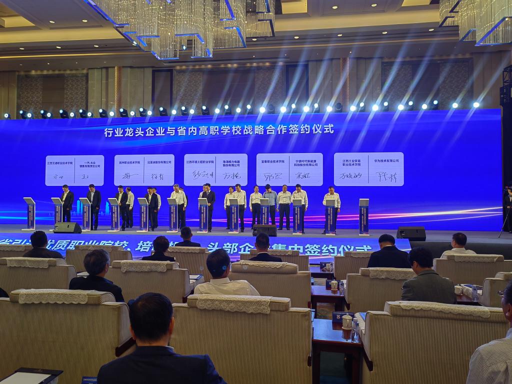 签约仪式上,邱军代表学10所行业龙头企业中的宁德时代新能源科技股份有限公司签订校企共建“数字锂电产业学院”合作协议。通过创新人才培养模式,重构课程体系,订单式培养人才,共建新能源材料应用技术、机电一体化等专业,共建共享专兼结合的双师型教师队伍,探索产业学院运行新机制,提升学校职业教育与产业发展的适配度和融合性,助推学“双高计划”建设,为培养服务宜春锂电新能源产业高质量发展的“赣鄱工匠”和“能工巧匠”贡献更多宜职力量。