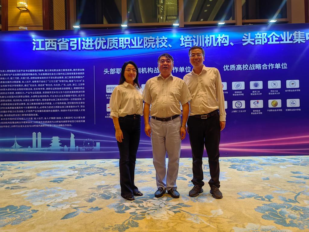 本站讯赵琰携手打造技能人才高地,奋力推进职业技工教育高质量发展。4月21日,江西省引进优质职业院校、培训机构、头部企业集中签约仪式在南昌举行。省委常委梁桂出席仪式并见证签约,副省长孙洪山主持。校党委副书记、校长邱军,党委委员、副校长易滨秀一同参加签约仪式。签约仪式前,校长邱军分别与孙洪山副省长和教育部职成司二级巡视员刘杰进行了交流,领导对学校取得的成绩表示肯定和赞扬。