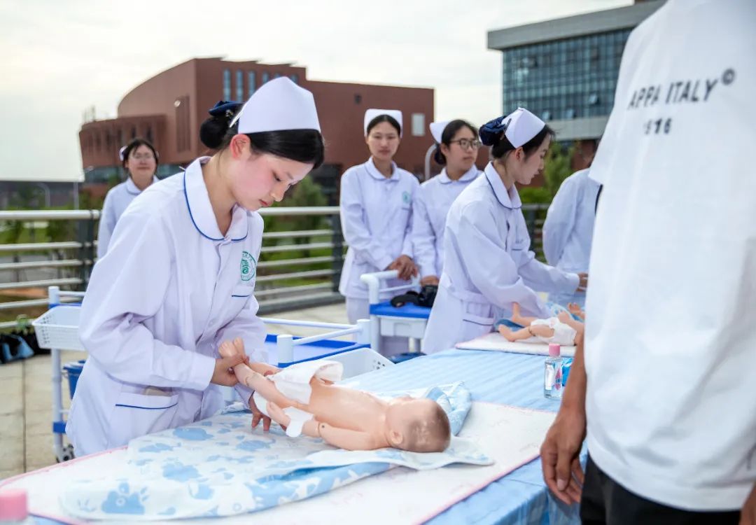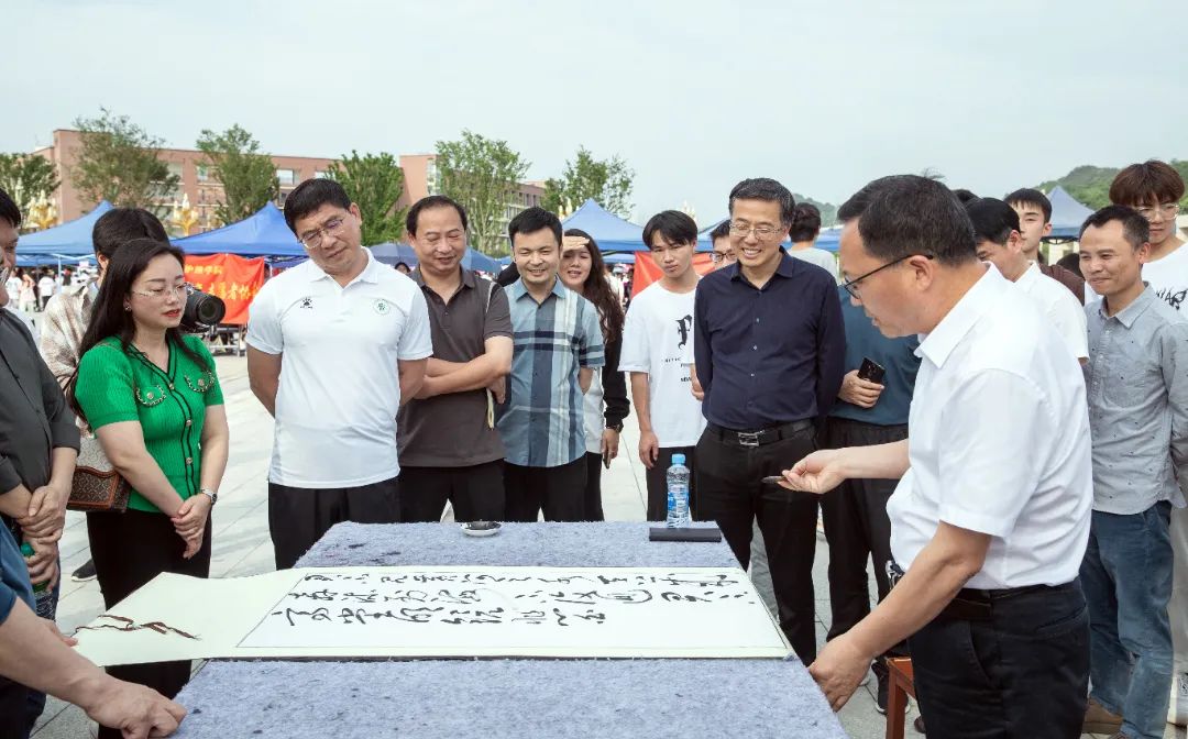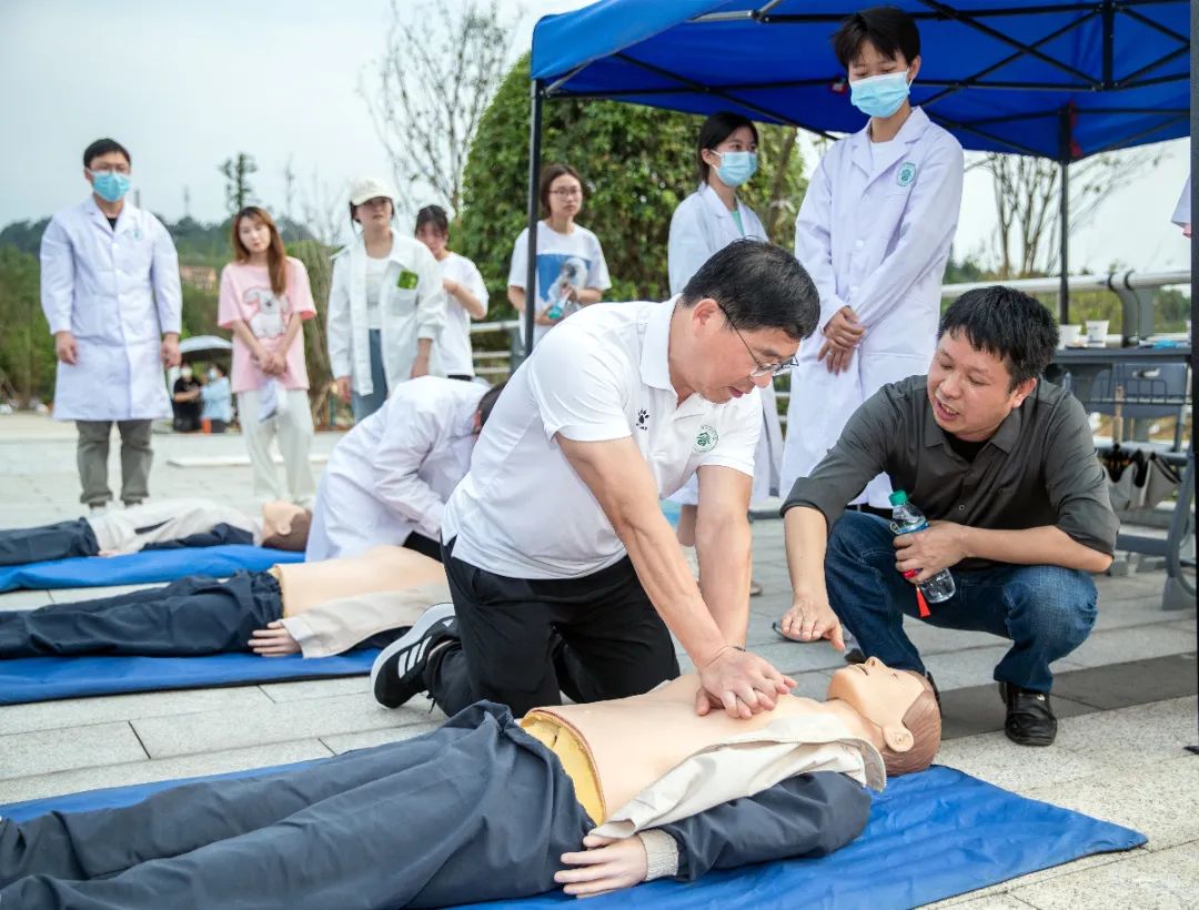 医学院的技能展示现场萦绕着同学们自制中药香囊的芳香。在心肺复苏演练区,任军在专业教师的指导下上阵学习心肺复苏术。党委副书记黄继斌在艺术与设计学院展位前挥毫泼墨,一幅气韵十足的书法作品跃然纸上。