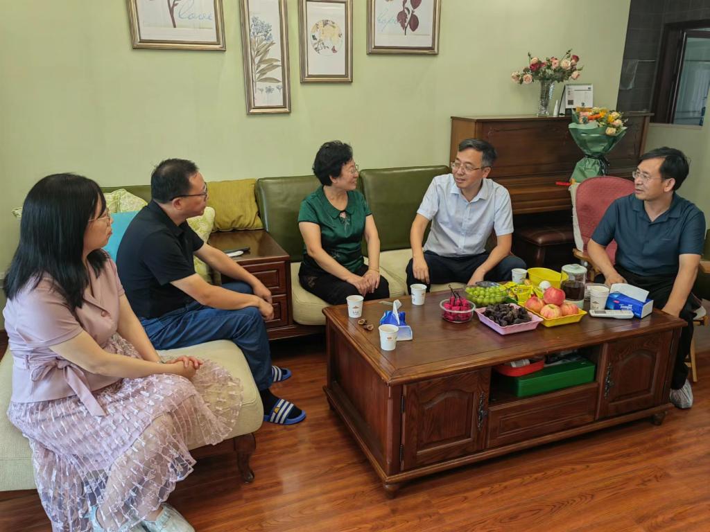 邱军来到退休教师王建美家中。王建美退休前一直从事财务会计教学,曾连续五年获评学校“优秀班主任”,2004年被授予“江西省第三届师德标兵”荣誉称号。邱军与王建美分享了学校近期发展的三件大事:一是学校顺利搬迁新校区,二是成功入选全省“双高”院校,三是学校再次荣获护理国赛一等奖。他感谢王建美等退休教师为学校发展作出的贡献,希望老教师们一如既往支持学校各项工作,并诚邀老教师们在今年校庆时回校参观。