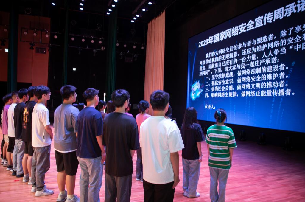活动由黄继斌主持,网络信息管理中心主任杨丹介绍本次国家网络安全宣传周活动方案,教师代表简文鑫宣读《网络安全倡议书》,学生代表宣读文明上网承诺书。