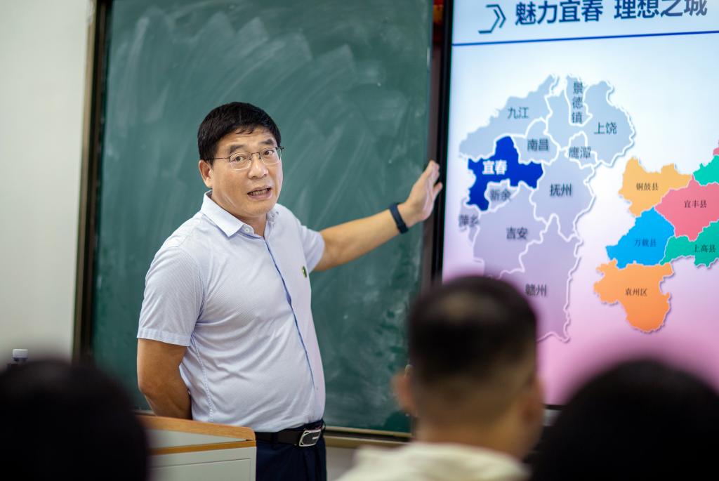 校党委书记任军来到机电与新能源汽车学院新能源材料应用技术23301班授课。他热情地向同学们介绍了宜春的历史文化、风景名胜、优势特色等,也介绍了多彩校园的建筑、道路、景观命名的由来,还深情地讲述了支月英“一生只为一事来”的动人事迹,从新城市到新校园,再到身边人,切实拉近了与大家的距离。他号召同学们切身感受学校发展变化,自觉融入到学校高质量发展中来,在职业教育大有可为的广阔舞台成就出彩人生。他强调,同学们要有目标规划,争做“五好”宜职新青年,奋勇争先,成就自我。
