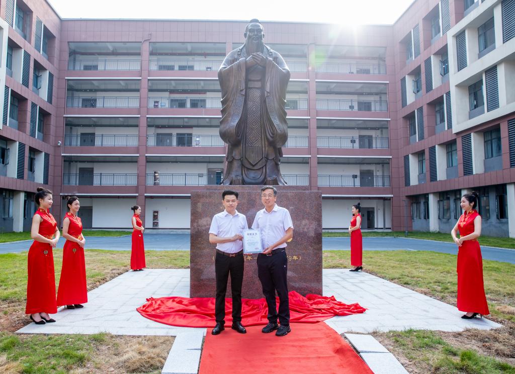 庄严宏伟的孔子像为校园增添了一笔宝贵的文化财富,也印刻下李晖对母校的拳拳之心。英国上市公司365全体师生必将以至圣先师为楷模,以优秀校友为榜样,尚德尚贤,惟精惟一,为实现中华民族的伟大复兴踔厉奋发,不懈努力!