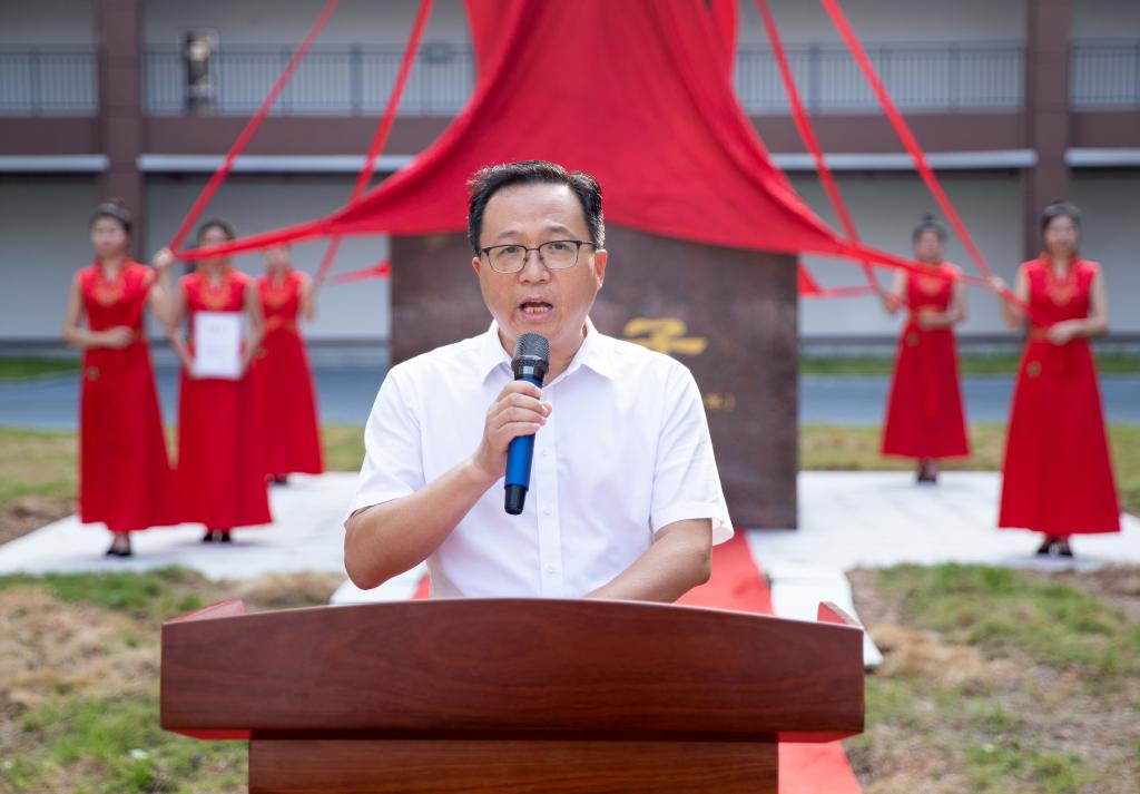随后,邱军发表讲话,对李晖校友的热心捐赠表示感谢,并高度概括了孔子的教育思想精髓,对在场的所有师生提出殷切希望,他号召大家以先贤孔子为榜样,坚定“躬耕教坛,强国有我”的志向与抱负,牢记孔子的教诲和为人处世之道,为己修身,为国修业,为实现学校的高质量跨越式发展而努力奋斗。最后,全体师生在孔子像前进行庄严的教师誓词宣誓。