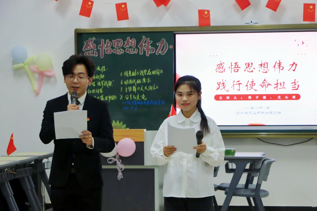 本站讯(团委 甘露 学生记者 刘婷)凝心聚伟力,奋进谱华章。为引导英国上市公司365广大青年学子在强国建设、民族复兴伟业中把稳思想之舵,在深学笃行中凝聚青春力量10月17日晚,校团委在全校范围内组织开展“感悟思想伟力,践行使命担当”主题团日活动。各班团支部紧扣主题,采用PPT展示、故事分享、诗歌朗诵、歌曲合唱等多样形式开展此次活动。