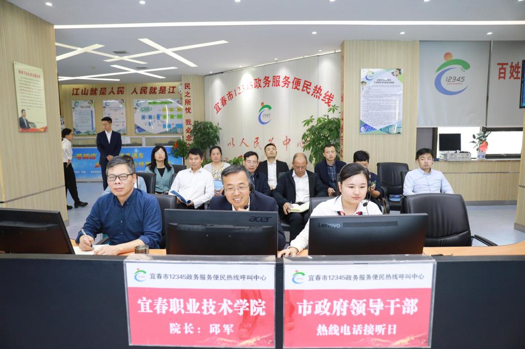 本站讯(党政办 方观洋)11月2日上午,党委副书记、校长邱军带领党政办、人事处、教务处、招就处、学工处等9个部门相关负责人走进宜春市12345政务服务便民热线呼叫中心,现场接听市民来电,倾听群众呼声,为群众排忧解难。