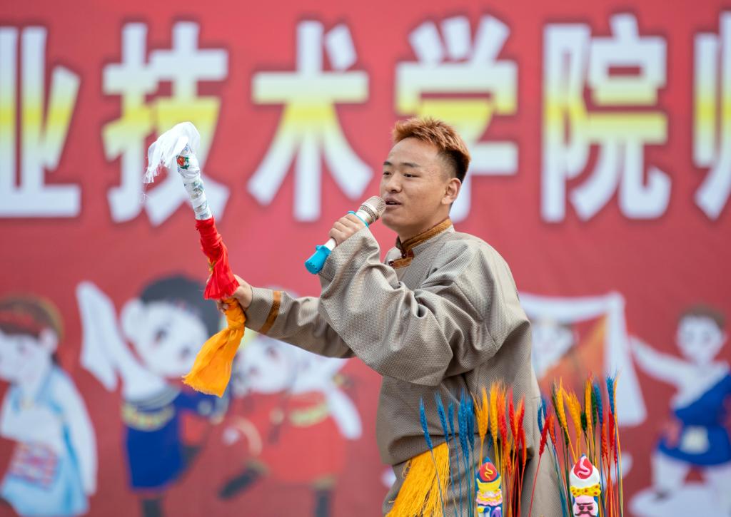 一个个精彩的节目在掌声中登场,有独具民族特色的藏戏表演《扎西雪巴》《西藏锅庄跳起来》《敬酒歌》等,藏族同学们还为领导和老师们献上寄托着美好祝愿的哈达。最后,师生们围着篝火在《迎接文成公主》音乐中集体唱跳起来,欢声笑语,气氛热闹非凡,整个现场洋溢着浓厚的新年气息。