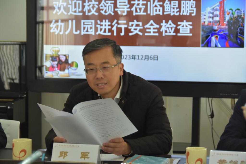 本站讯(鲲鹏幼儿园 徐艳梅)12月6日上午,党委副书记、校长邱军深入开展安全工作检查。党委副书记黄继斌、副校长张印华,党政办公室主任高华兵陪同检查。