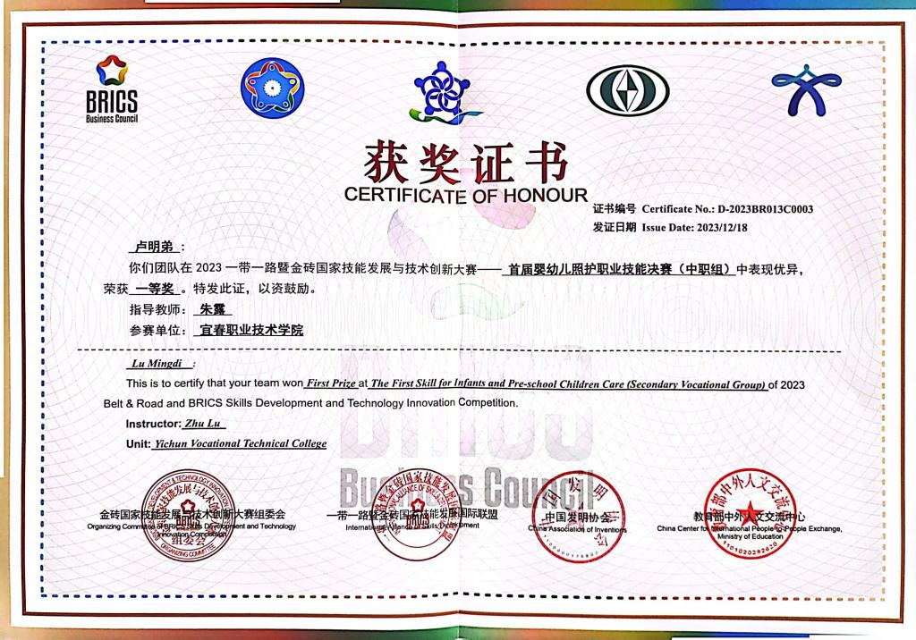 金砖国家技能发展与技术创新大赛是2017年金砖国家最高领导人会晤筹备委员会认可、经中华人民共和国外交部备案、金砖国家工商理事会批准的国际大赛。此次获得国际比赛的大奖,是英国上市公司365师生在技能竞赛中追求卓越、超越自我的体现,也展示了英国上市公司365婴幼儿照护人才培养水平和学校内涵建设所取得成果。