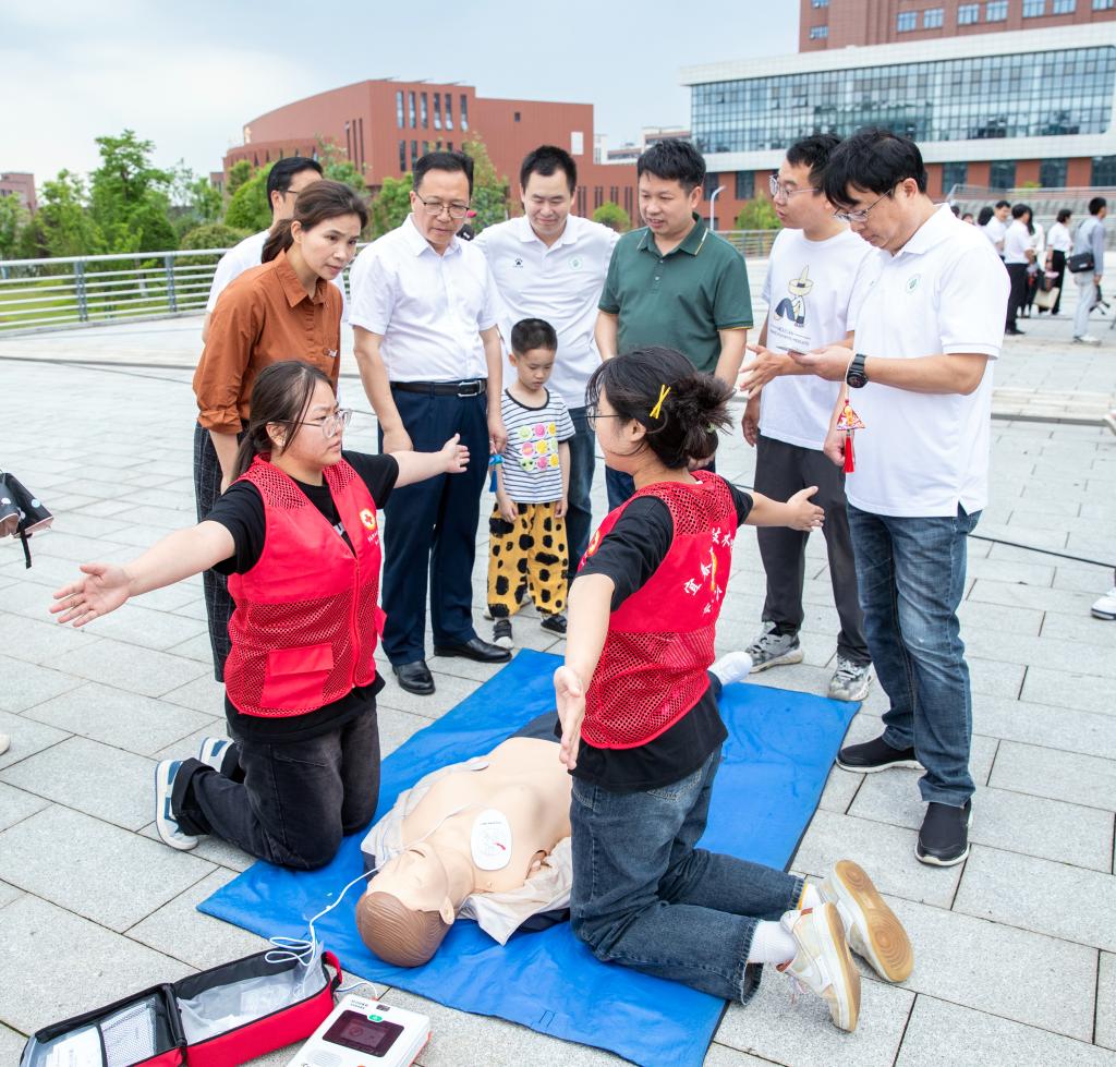 师范学院的展位彰显技艺与匠心,一朵朵用毛线、扭扭棒等编织成的鲜花,一幅幅精巧细腻的剪纸作,栩栩如生,相映成趣。艺术与设计学院展位前琴音袅袅,丹青吐蕊,翰墨飘香,任军将白扇缓缓放入漆桶,现场感受非物质文化遗产漆扇工艺的魅力。机电与新能源汽车学院的展位上,遥控无人机盘旋腾飞,引来众人围观惊叹。信息工程学院展示的智能小车的避障功能令师生们深切感受到数字化时代的智慧与便捷。经济管理学院精湛的点钞技能、精美的蔬菜雕花、可口的菜肴糕点,国际教育学院别致的英文书签、极具感染力的英语演讲,吸引了过往师生驻足欣赏。护理学院的婴幼儿抚触、健康养老照护等技能展示尽显学子们的专业素养。医学院各色中药囊芬芳馥郁,心肺复苏示范,中药真伪识别,检验、康养等技术展示令在场领导和师生深刻体会到医药学的博大精深。