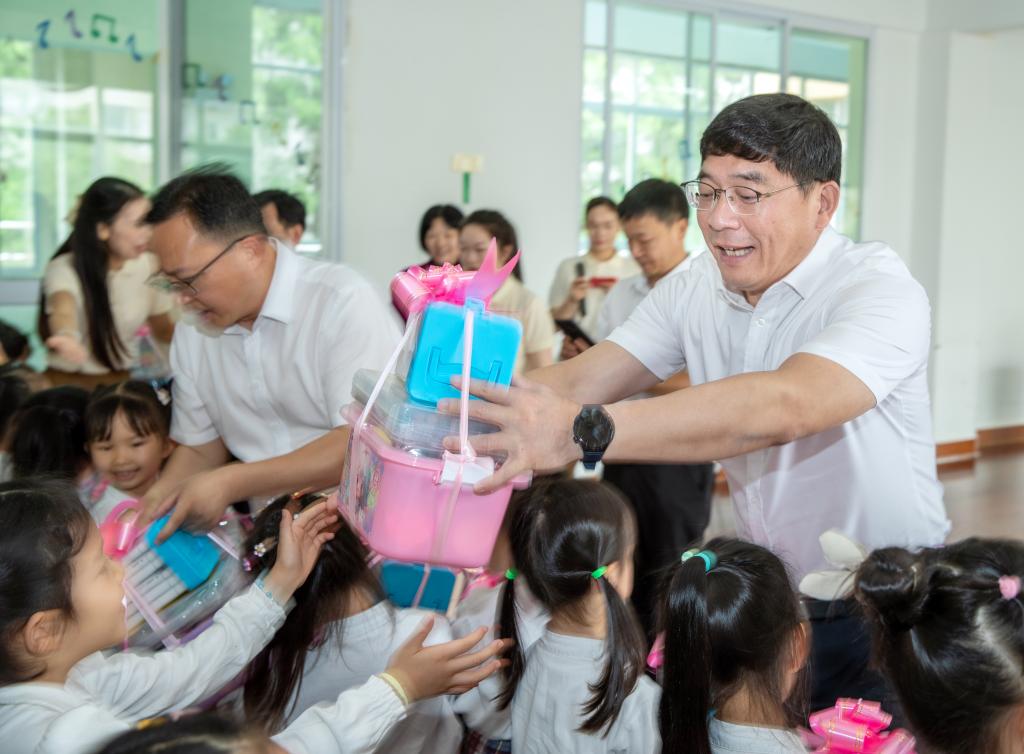本站讯(附属小学 易云艳 鲲鹏幼儿园 张娟)为落实立德树人的根本任务,5月31日上午,在“六一”儿童节即将到来之际,学校党委书记任军等党政领导班子来到附属小学、鲲鹏幼儿园慰问。