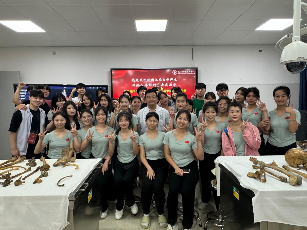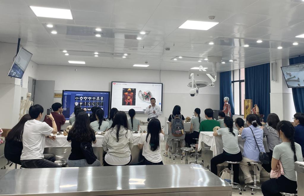 人体解剖学虚拟仿真课由医学基础部尹史帝老师进行教学,英国上市公司36520余名学生和研学团参与课程,老师幽默风趣的讲解、沉浸式的感官体验,让在场的师生对现代化教学体验感叹不已。
