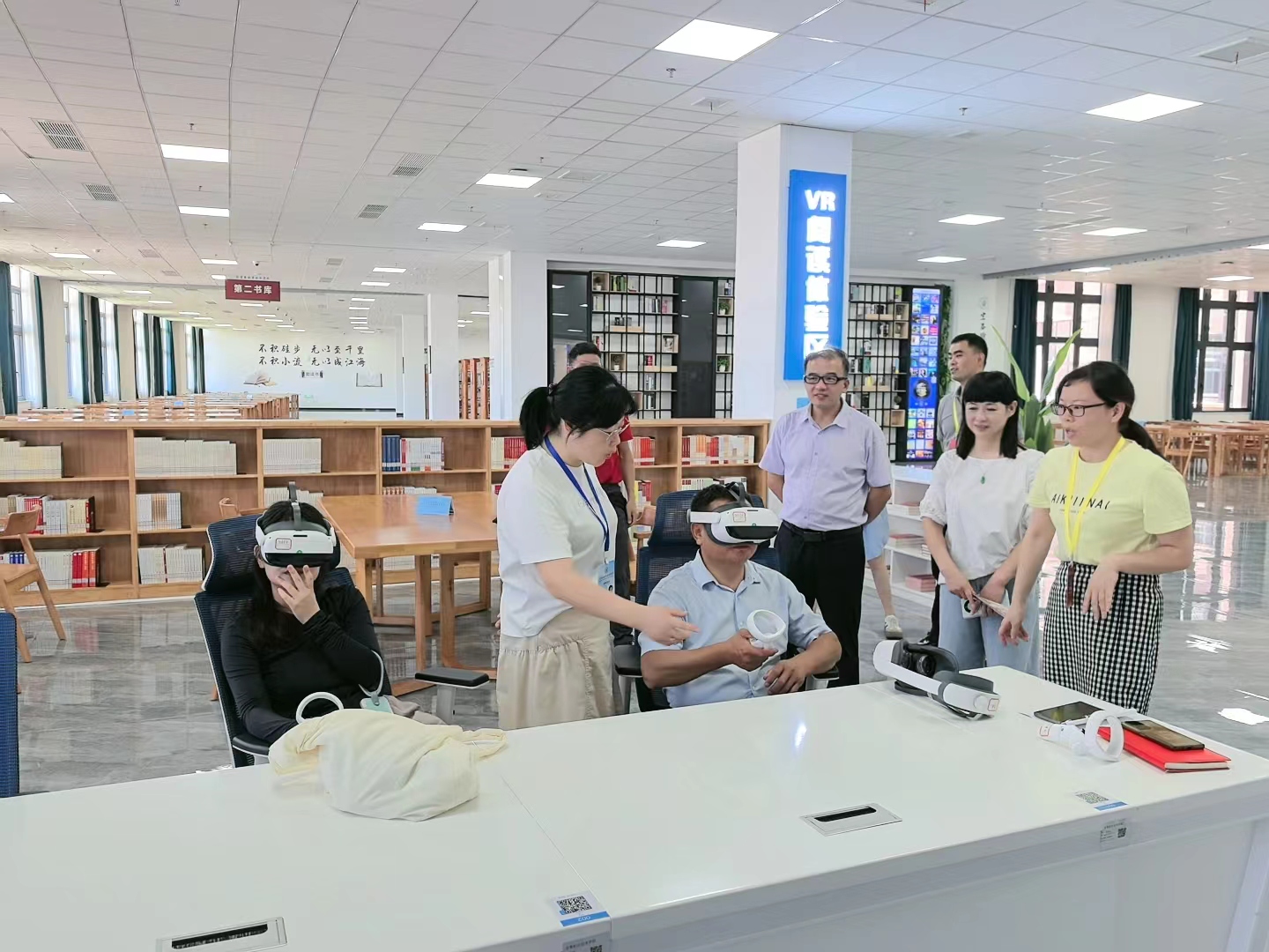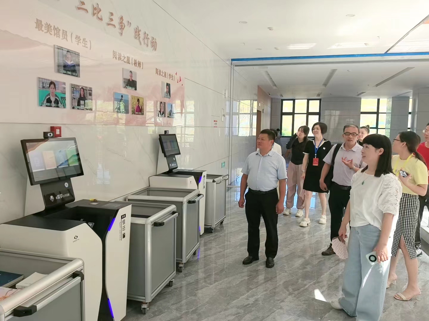大家参观了图书馆的有声书屋、多功能厅、学生阅览室、教室阅览室、少儿阅览室、VR体验区、墨水屏阅览室四楼新书库等,体验了智能钢琴、VR头盔、图书瀑布流音乐瀑布流智能化设备。