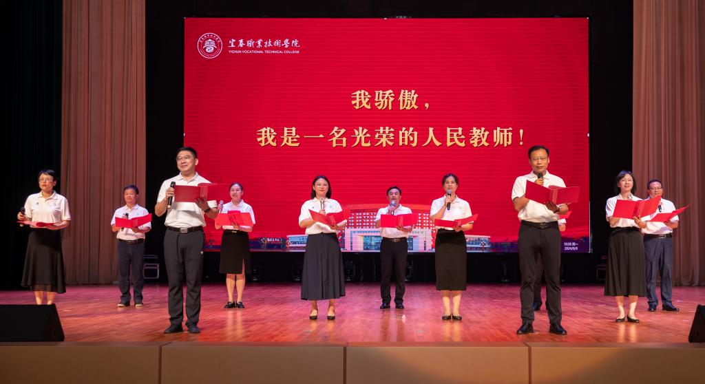 大会颁发了新晋教授聘书,表彰了2023年度先进集体、教学名师、骨干教师等7项校内荣誉。大会表扬了江西省教学成果奖、江西省职业院校技能大赛教学能力比赛、江西省高校辅导员素质能力大赛等18项竞赛的获奖教师和指导教师。优秀教师代表吕麦丝、新入职教师代表易焕欢依次发言。