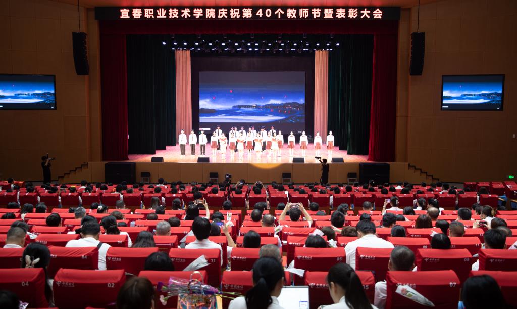 “当有一束光,培根铸魂是教师的责任……”表彰仪式开始前,师范学院师生带来了诗朗诵《灯塔的一束光》。最后,艺术与设计学院歌舞情景剧将活动推向高潮,师生们生动演绎新老教师“青蓝传承”,从青丝到白发,矢志不渝、奉献教育。主席台礼炮响起,台下欢呼“教师节快乐”(刘娜 欧阳富萍 胡倩)