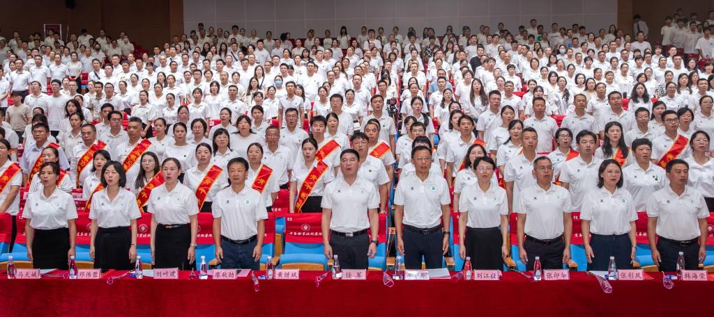 李铁刚宣读《关于表彰先进集体和个人的决定》《关于表彰在教育教学改革中作出突出贡献教师的决定》。2023-2024学年度,学校在教育教学改革中取得优异成绩,全校教师牢记立德树人责任,锐意进取、扎实工作,在各项技能竞赛中履创佳绩,涌现出了护理学院等一批先进集体,谢海英等一批先进个人。