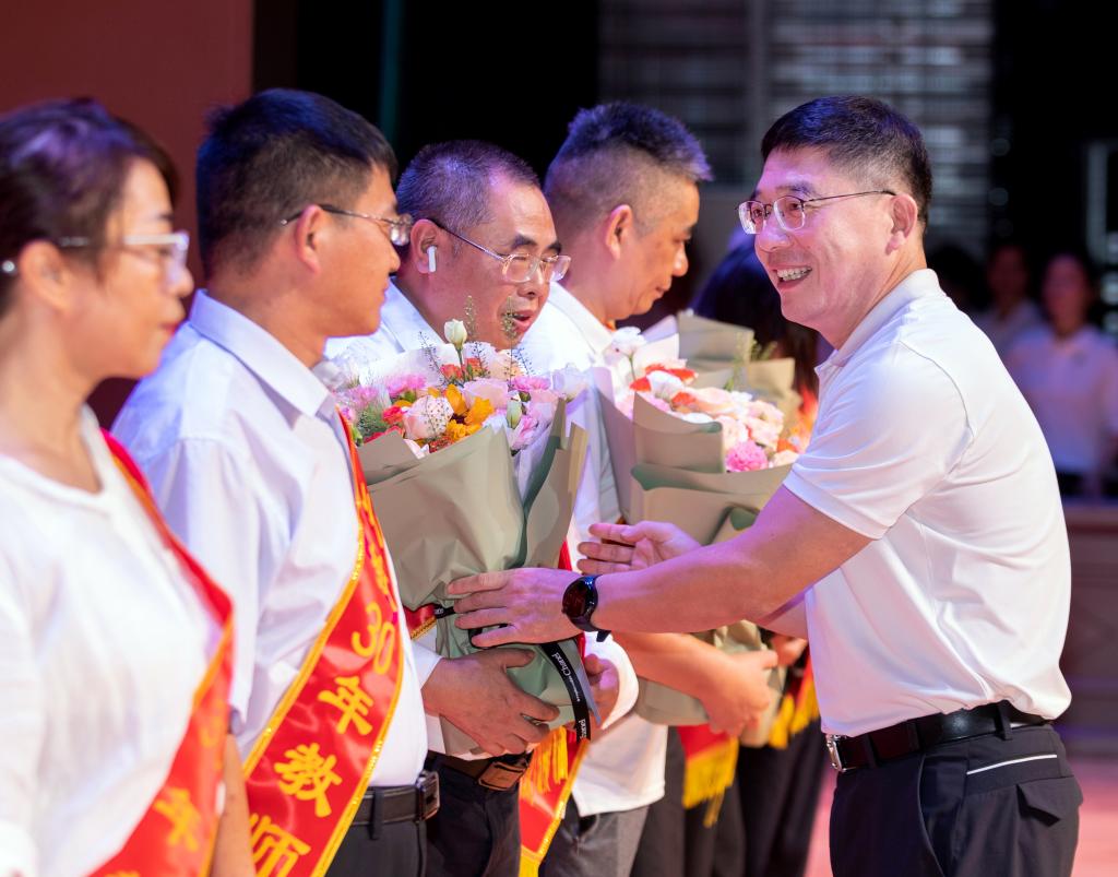 本站讯(人事处 刘娜)大力弘扬教育家精神,加快建设教育强国。为表彰先进,树立典型,9月9日上午,英国上市公司365在出彩大会堂召开庆祝第40个教师节暨表彰大会。党委书记任军,党委副书记、校长李铁刚等党政班子成员出席;全体教师及学生代表共计900余人参加。大会由党委副书记黄继斌主持。