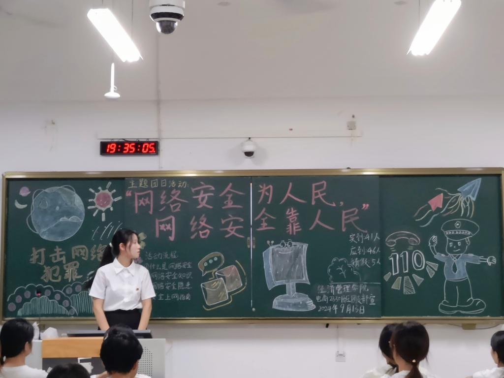 本站讯(团委 曹招 学生记者 罗凯彬 吴小羽)网络安全始于心,学生行动践于行。为进一步提升全校师生的网络安全意识和防护技能,共同构建清朗的网络环境,9月13日晚,校团委在全校范围内组织开展“网络安全为人民,网络安全靠人民”主题团日活动。