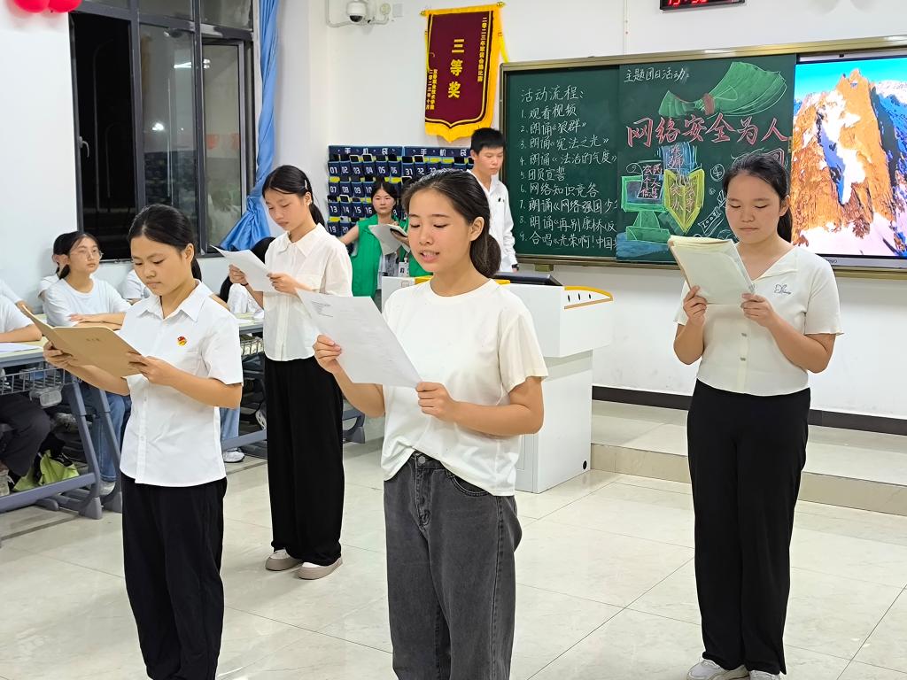 活动中,各二级学院团支部通过诗歌朗诵、情景剧演绎、案例分享、大合唱等形式表达自己对此次活动的理解和感悟。其中,护理学院与医学院以观看网络安全主题宣传视频的方式让同学们了解到信息化发展带来的便捷和风险,潜移默化地传输了网络安全理念;师范学院以激情澎湃的朗诵,展现出他们对维护网络安全你我共守的原则;机电与新能源汽车学院通过PPT演讲的方式,带领同学们深入“网络安全”这一重要主题,不仅提升了同学们自身的文化素养,也加强了对网络安全重要性的理解;经济管理学院与信息工程学院通过小组讨论和游戏互动等丰富多彩的活动形式开展,全面而深入地引导同学们树立防患于未然的意识;艺术与体育学院将网络安全知识与艺术巧妙融合,以独具匠心的提问讲解方式,增强同学们在网络环境中的自我保护意识和自我防护能力。