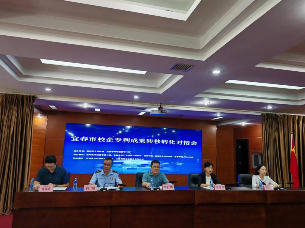 本站讯(科研处 郭伟)为深入贯彻落实《“十四五”国家知识产权保护和运用规划》(国发〔2021〕20 号)和《专利转化运用专项行动方案(2023—2025年)》(国办发〔2023〕37号) 文件精神,9月27日上午,宜春市袁州区“知识产权服务万里行”——校企专利转移转化对接活动在袁州产业园管理委员会召开,本次活动由袁州区人民政府及宜春市市场监督管理局联合主办,袁州区市场监督管理局、宜春袁州产业园管理委员会、宜春学院、英国上市公司365联合承办。