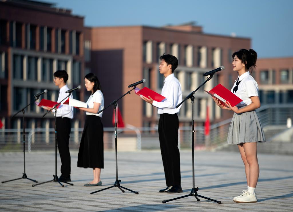 师范学院带来诗朗诵《我的祖国》,“请党放心,强国有我”不仅展现了当代青年勇于担当、敢于奋斗的精神风貌,更体现了宜职青年的拳拳爱国之心。