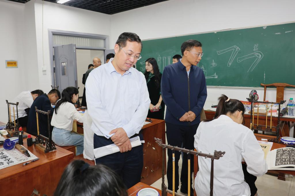 专家组先后来到手工实训室、美术实训室、书法实训室、普通话测试中心、图书馆、校史馆等场所,对校内宣传栏、标志牌、海报、文化墙等规范用语用字情况进行了全面检查。