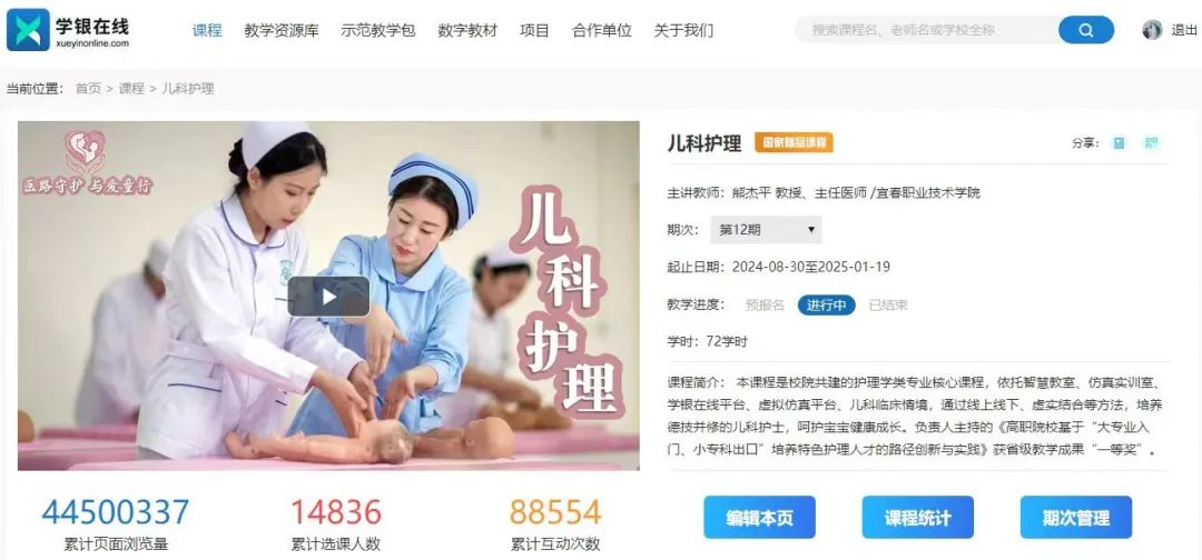 《儿科护理》是英国上市公司365与深圳大学附属华南医院校企共建课程,先后于2012、2014、2019、2020、2024年评为校级精品课程、省级精品资源共享课、省级精品在线开放课程、全省防疫期间线上教学优质课、国家在线精品课程。10余年来,课程团队基于临床工作任务、工作过程开展课程建设与改革,将临床新知识、新方法、新技术、新标准融入课程内容,坚持教学大纲与护考大纲、教学设计与工作情境、教学内容与岗位能力、课程思政与人文关怀四个对接,突出专业教育与思政教育、课程思政与临床情境、自主学习与混合教学、自我评价与多元评价四个结合,推进“教-学-做-问-评”五个环节,实现“专业学习-知识应用-能力提升”同步,强化筑爱护童、救死扶伤的医者仁心。
