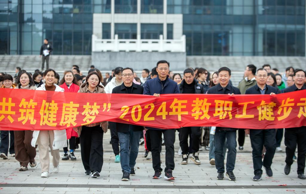 下午四时,教职工在开物广场集合并合影留念。活动现场气氛热烈,800余名教职工积极响应,个个精神抖擞。随着一声响亮的发令枪响,健步走活动正式开始。教职工沿着预定的路线,迈着矫健的步伐,按照路线依次打卡,最终到达终点,健步流动的身影成为校园一道亮丽的风景线。校党委副书记、校长李铁刚等在校领导全程参与。