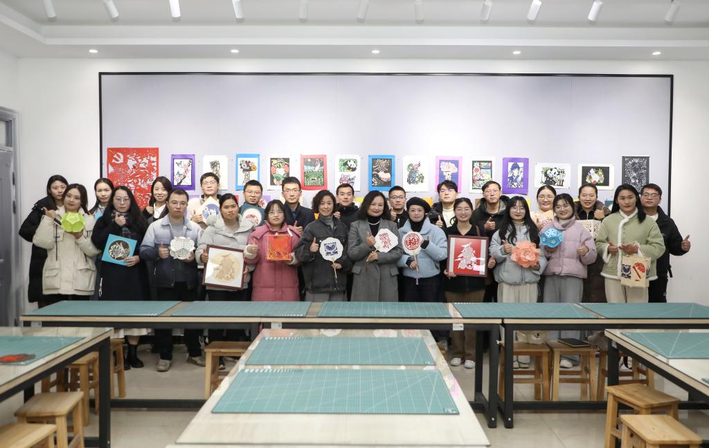 活动尾声,丁晓景带领大家来到她的“名师工作室”,向大家介绍了非遗项目剪纸的历史脉络和实际运用的理论知识。大家对一件件独具特色的剪纸作品赞不绝口,感触颇多,纷纷表示:“青蓝对话”活动的开展,不仅为青年教师搭建了沟通学习的平台,更为将来的职业发展指明了方向。