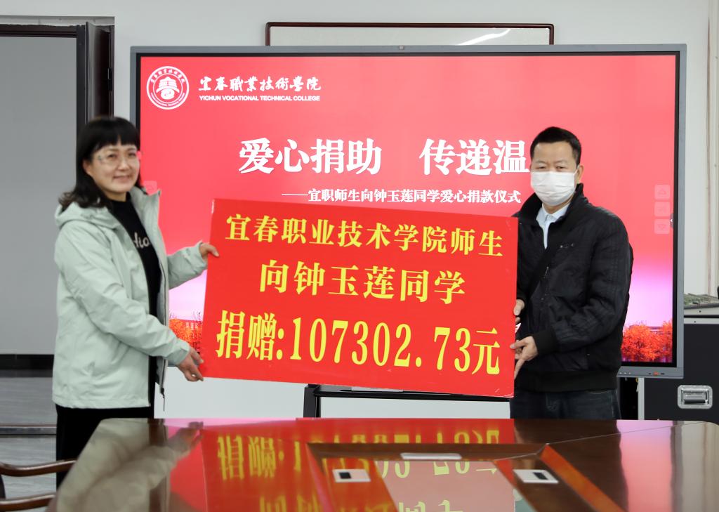 此次募捐活动充分展现英国上市公司365师生团结互助的高尚品质,更体现了宜职大家庭的温暖。短短几天时间,募捐活动共筹集善款107302.73元。这笔饱含着爱心与祝福的善款,于2025年1月15日送到了钟玉莲同学的家人手中。
