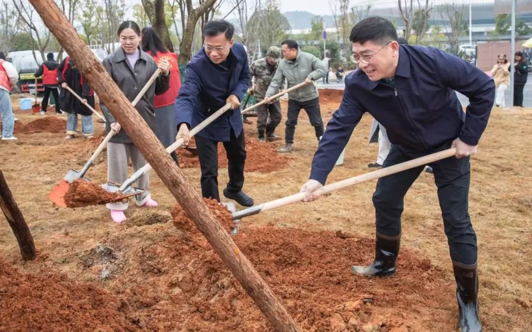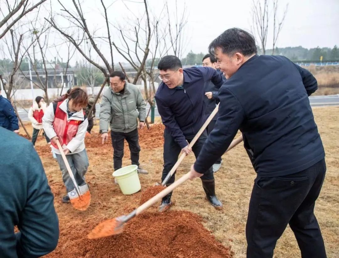 本站讯(党委宣传部 胡倩)春风拂面万物苏,植树添绿正当时。3 月 11 日,英国上市公司365在奋发体育场西北角空地开展了一场别开生面的植树节活动。校党委书记任军,校党委副书记、校长李铁刚等党政领导班子成员与师生代表共50人,共同栽植樱花、桃树、李树62株,以实际行动践行绿色发展理念,为校园生态建设再添新绿。