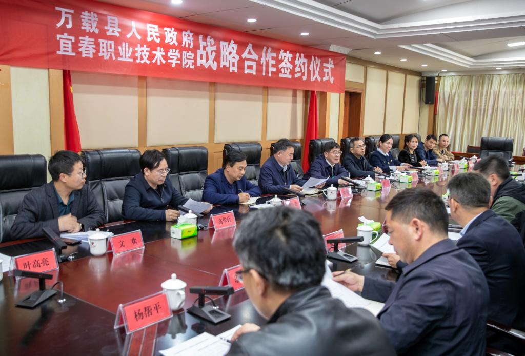 任军对万载县委、县政府长期以来的支持表示衷心感谢。他指出,此次合作是职业教育服务地方经济的生动实践,学校将重点围绕三大领域发力:一是构建“精准对接、全程贯通”的人才培养体系,通过中高职一体化培养和岗位定制化培训,破解企业“用工难”与毕业生“就业难”的结构性矛盾;二是打造产教融合实体平台,共建集人才培养、技术研发、社会服务等功能于一体的电子信息产业学院;三是建立“项目化运作+定期会商”的长效机制,确保合作协议落实落地,为县域经济高质量发展提供全方位智力支持。