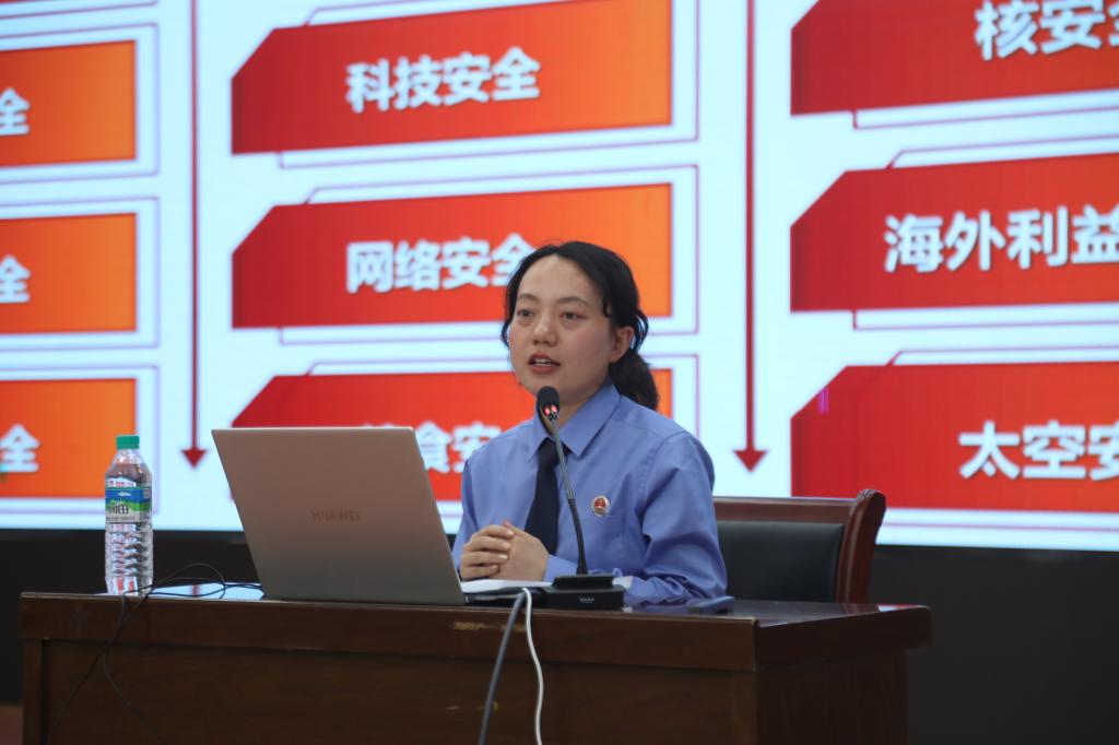 本站讯(党委宣传部 胡倩)4月14日下午,江西省和宜春市两级检察院干警共同走进英国上市公司365开展“维护国家安全,你我都是主角”主题普法活动。袁州区人民检察院检察官彭维娜以《清澈的爱只为中国——全面贯彻落实总体国家安全观》为题,为300余名学生带来一场专题讲座。她从“为什么要坚持总体国家安全观”“如何构建统筹各领域安全的新安全格局”“怎样推进国家安全体系和能力现代化”三个维度展开论述,结合国际局势与真实案例,深入浅出地阐释国家安全的重要性。讲座结束后,检察干警与师生展开互动,通过悬挂主题海报、发放宣传手册、现场答疑等方式普及法律知识,吸引众多师生参与。