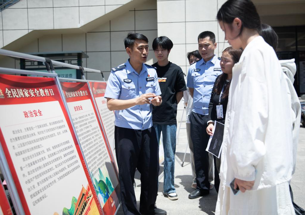 4月15日上午,宜春市公安局袁州分局联合学校开展安全教育主题活动。活动现场,40余块国家安全主题展板陈列于东区食堂前广场,涵盖反恐防暴、反诈防骗、反邪教、反间谍、生物安全等18个领域内容。公安干警通过讲解典型案例、模拟互动等形式,向师生普及安全防范技能。现场最引人注目的是无人机等先进办案设备的展示,民警向在场学生演示了无人机在侦查救援中的应用,活动让同学们直观感受到科技赋能国家安全的力量。此外,公安干警还结合高校实际,重点宣讲了防范电信诈骗、抵制邪教渗透等知识,向师生发放反诈手册、安全知识卡片等多种宣传资料。