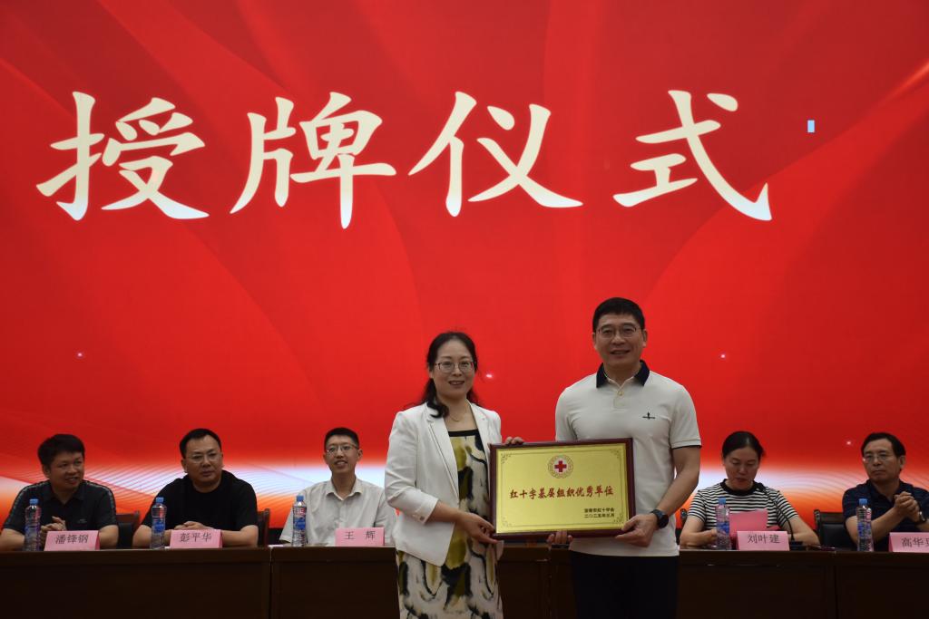 活动共分两个阶段。第一阶段“致敬关怀,表彰先进”。钟莉代表宜春市红十字会为学校颁发宜春市“2024年红十字基层组织优秀组织”奖牌,并向学校捐赠价值约2万元的急救教育教具,助力学校进一步提升应急救护培训的专业化水平。任军向市红十字会颁发捐赠证书,并在致辞中肯定校红十字会取得的成绩,并殷切寄语全体师生,期望大家在推进“双高”建设的征程中,既要成为健康校园的守护者,亦能担当起提升教育质量的促进者角色。现场还为英国上市公司365“宜春市高校红十字应急救护培训基地”举行揭牌仪式。