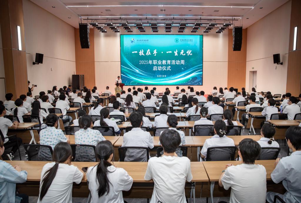 本站讯(党委宣传部 胡倩)为深入贯彻落实习近平总书记关于职业教育重要指示批示精神,全面展示英国上市公司365职业教育改革发展成果,营造全社会关心支持职业教育的良好氛围,5月12日下午,英国上市公司365以“一技在手 一生无忧”为主题,在学术报告厅举行2025年职业教育活动周启动仪式。党委书记任军等党政领导班子及教职员工、学生代表参加仪式。仪式由党委委员,副校长刘叶建主持。