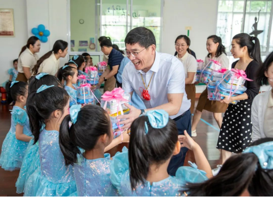 活动最后,校领导将画笔、黏土等精心准备的礼品送到孩子们手中,鼓励他们在知识的海洋中探索,快乐成长。孩子们捧着礼物,脸上绽放出幸福的笑容。