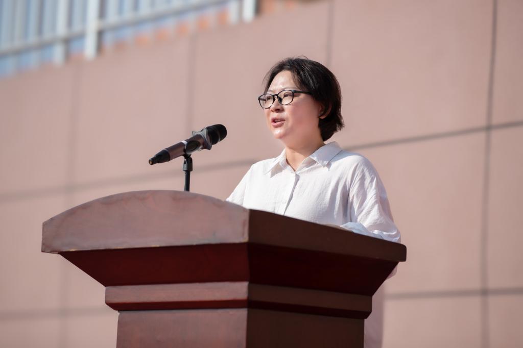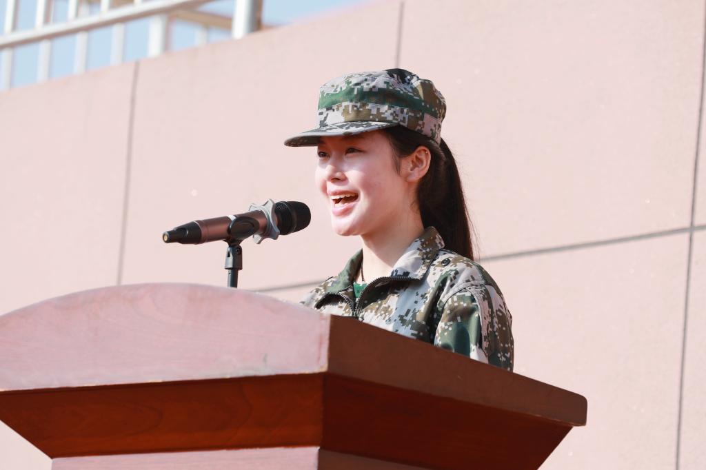 “我们定将不负期望,以优异的训练成绩、昂扬的精神面貌,向学校、向祖国汇报!”新生代表周欣颖认为军训是一次检阅自身,向军人学习的宝贵机会,承诺将在军训中服从命令、听懂指挥,刻苦训练、磨砺意志,团结协作、共同进步,巩固成果、内化于心,用汗水和拼搏,书写青春华章。