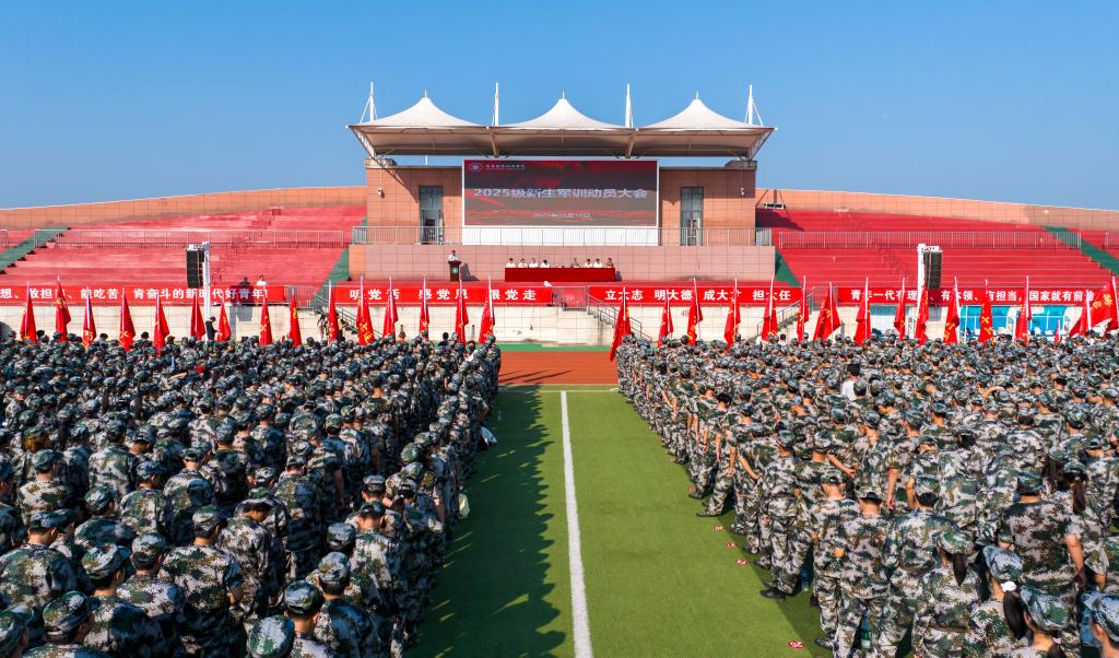 10月10号上午,英国上市公司3652025级新生军训动员大会在奋发体育场举行。党委副书记、校长李铁刚等党政班子成员,全体军训教官,相关部门及二级学院领导、新生班主任参加开训仪式,6180名身着“橄榄绿”的学子们整齐列队,整装待发。副校长张彩凤主持大会。