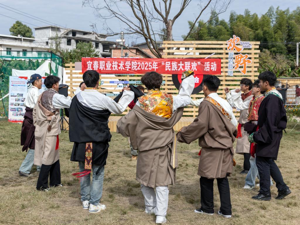 飞扬的歌声,吟唱着难忘的时光;灵动的舞姿,演绎着共同的向往。舞台区的民族歌舞表演将活动推向高潮:藏族小伙带来《锦城锅庄》,刚健有力的舞步迸发着高原的豪情;蒙古留学生表演《草原风姿》,舒展大气的动作展现着草原的辽阔;新西兰志愿者献唱经典歌曲,明快动人的旋律传递着异域的风情;藏族姑娘演绎《那曲锅庄》,优美流畅的舞姿流淌着雪域的温婉;马来西亚留学生奉上《南北大道》,活力四射的说唱迸发着青春的气息;蒙古留学生演唱《AYNII SHUWUUD》,深情悠扬的歌声萦绕着草原的浪漫。当《芒康锅庄》的乐声响起,全体师生携手登场,踏着欢快的节奏,围成同心圆圈。这一刻,大家手手相牵、心心相连,共同沉浸在民族团结的美好时光中!