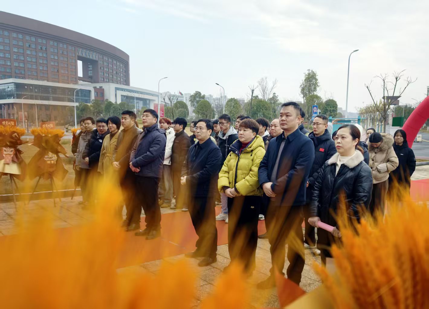 任军等领导与企业代表共同剪彩,预祝惠世康大药房生意兴隆、服务惠民,祝愿校企双方合作硕果累累。