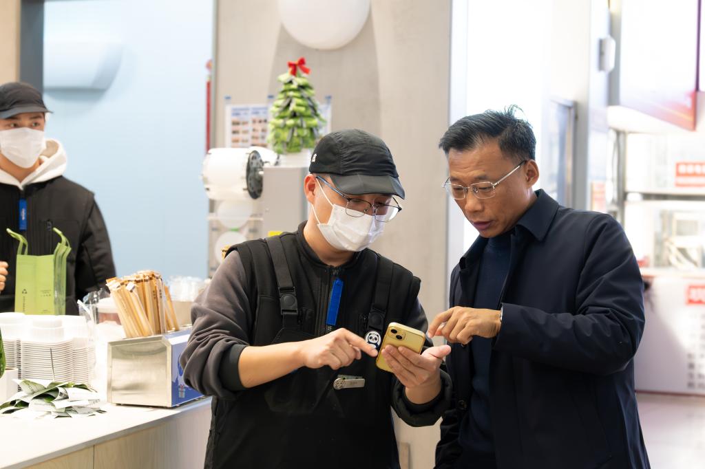 会后,李铁刚随即带队来到西区博冠食堂一楼,实地巡查各档口的经营、售卖情况。