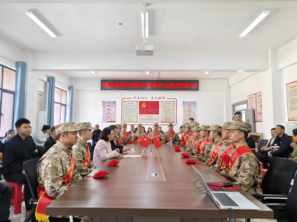 大会在庄严的国歌声中拉开序幕。周军华首先宣读了2026年春季入伍学生名单及定兵方向,对19名顺利通过体格检查、政治考核的应征青年表示热烈祝贺。随后,校领导和班主任代表为新兵们佩戴鲜艳的大红花,火红的花朵映衬着青年们朝气蓬勃的脸庞,现场响起经久不息的掌声。