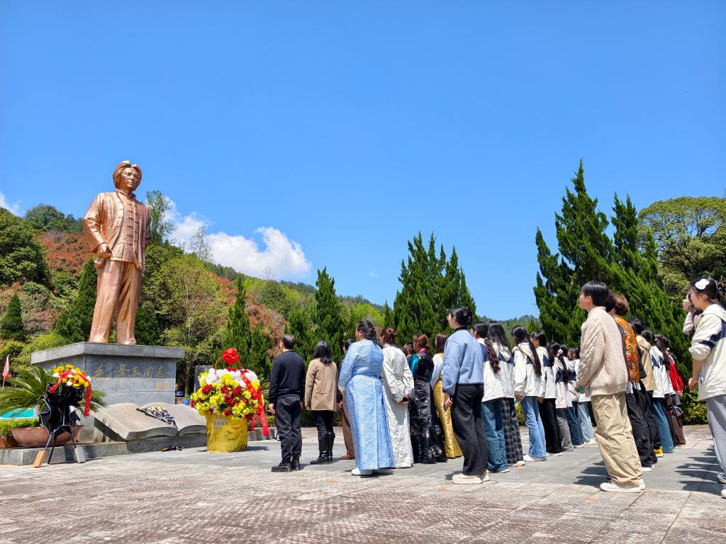 本站讯(大学生通讯社 程晓欢)青山埋忠骨,史册载功勋。4月1日,清明节前夕,党委副书记刘平涯,党委委员、组织部长韩海荣,党委委员、宣传部长马天娥与辅导员、少数民族学生、红色班级学生代表50余人赴宜春市铜鼓县开展“清明祭英烈”活动。
