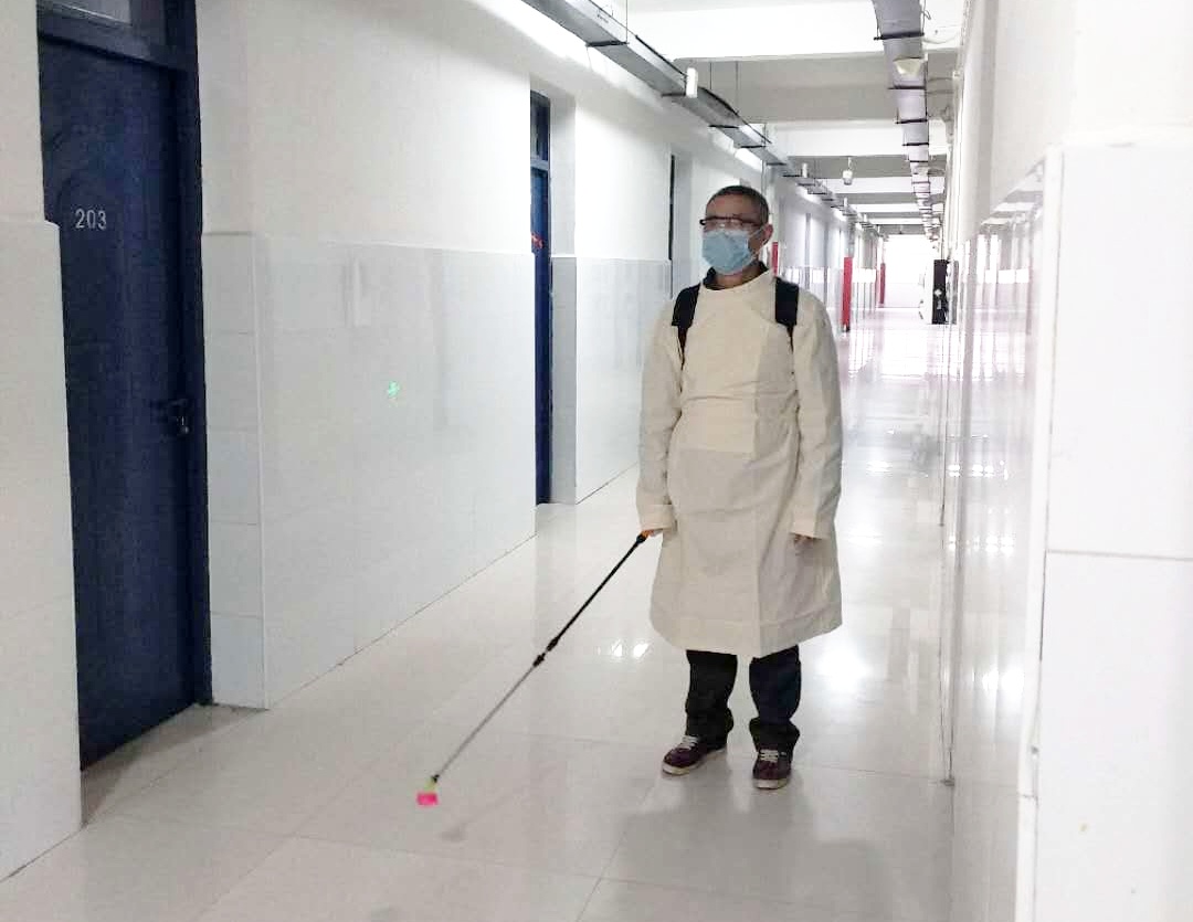 最后,后勤保障人员对寝室、教室、楼梯、通道进行消杀处理,本次演练结束。